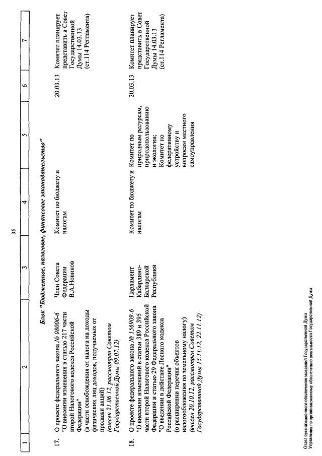 "О КАЛЕНДАРЕ РАССМОТРЕНИЯ ВОПРОСОВ ГОСУДАРСТВЕННОЙ ДУМОЙ С 12 ПО 22 МАРТА 2013 ГОДА"