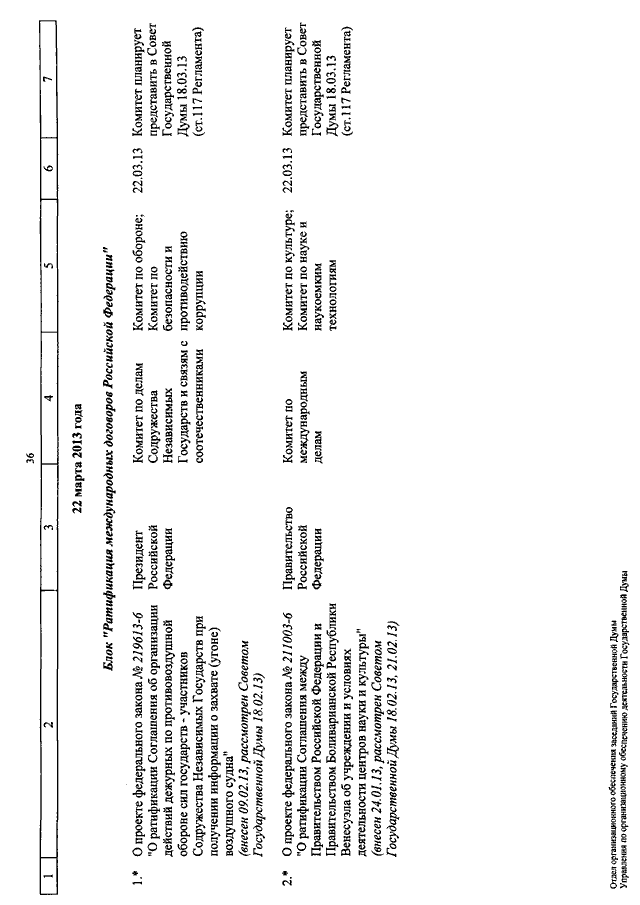"О КАЛЕНДАРЕ РАССМОТРЕНИЯ ВОПРОСОВ ГОСУДАРСТВЕННОЙ ДУМОЙ С 12 ПО 22 МАРТА 2013 ГОДА"