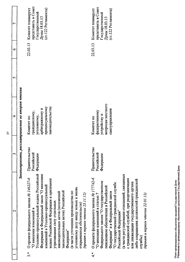"О КАЛЕНДАРЕ РАССМОТРЕНИЯ ВОПРОСОВ ГОСУДАРСТВЕННОЙ ДУМОЙ С 12 ПО 22 МАРТА 2013 ГОДА"