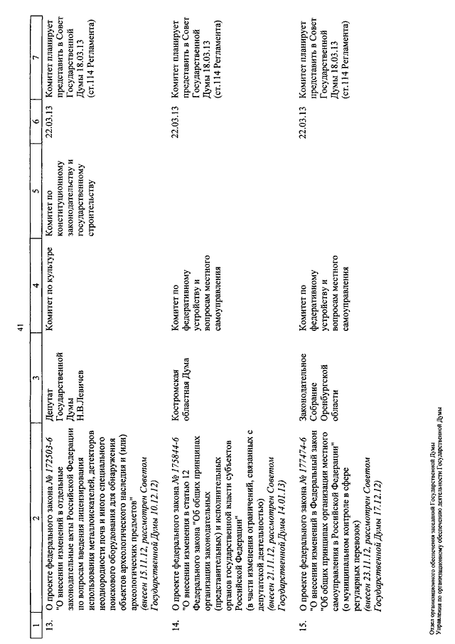 "О КАЛЕНДАРЕ РАССМОТРЕНИЯ ВОПРОСОВ ГОСУДАРСТВЕННОЙ ДУМОЙ С 12 ПО 22 МАРТА 2013 ГОДА"