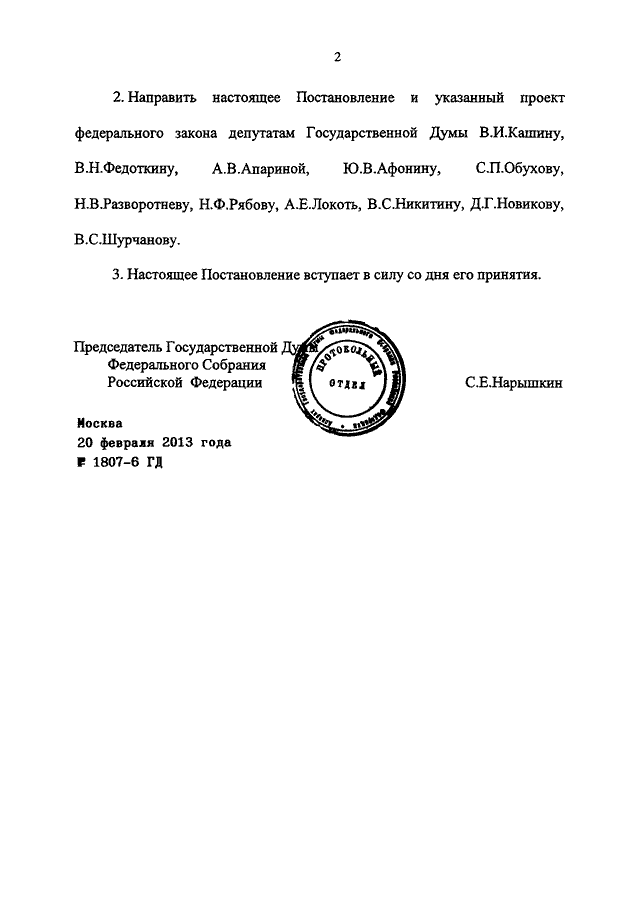 ПОСТАНОВЛЕНИЕ ГД ФС РФ от 20.02.2013 N 1807-6 ГД