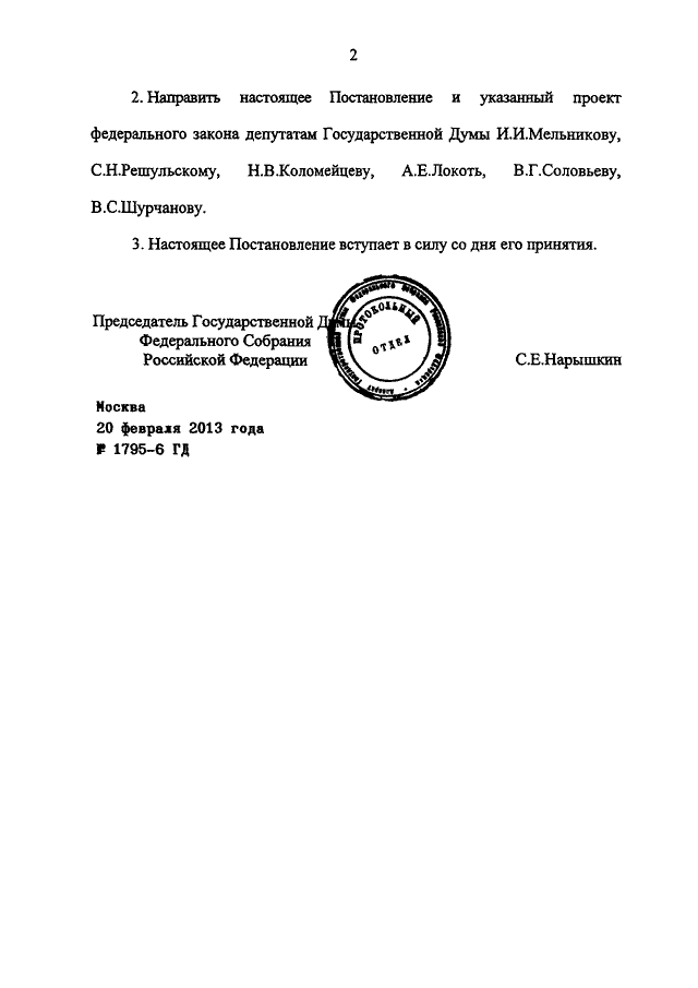 ПОСТАНОВЛЕНИЕ ГД ФС РФ от 20.02.2013 N 1795-6 ГД