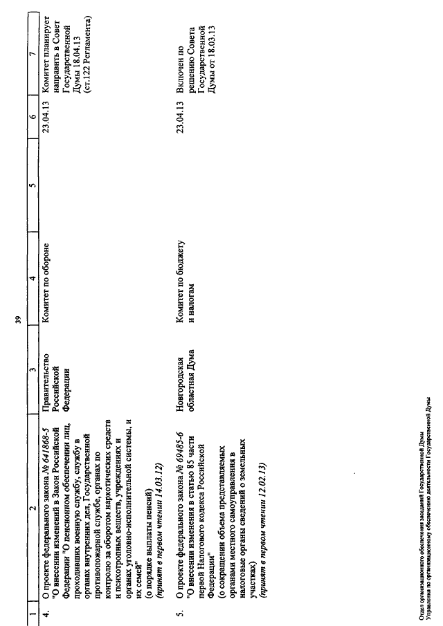 "О КАЛЕНДАРЕ РАССМОТРЕНИЯ ВОПРОСОВ ГОСУДАРСТВЕННОЙ ДУМОЙ С 9 ПО 26 АПРЕЛЯ 2013 ГОДА"