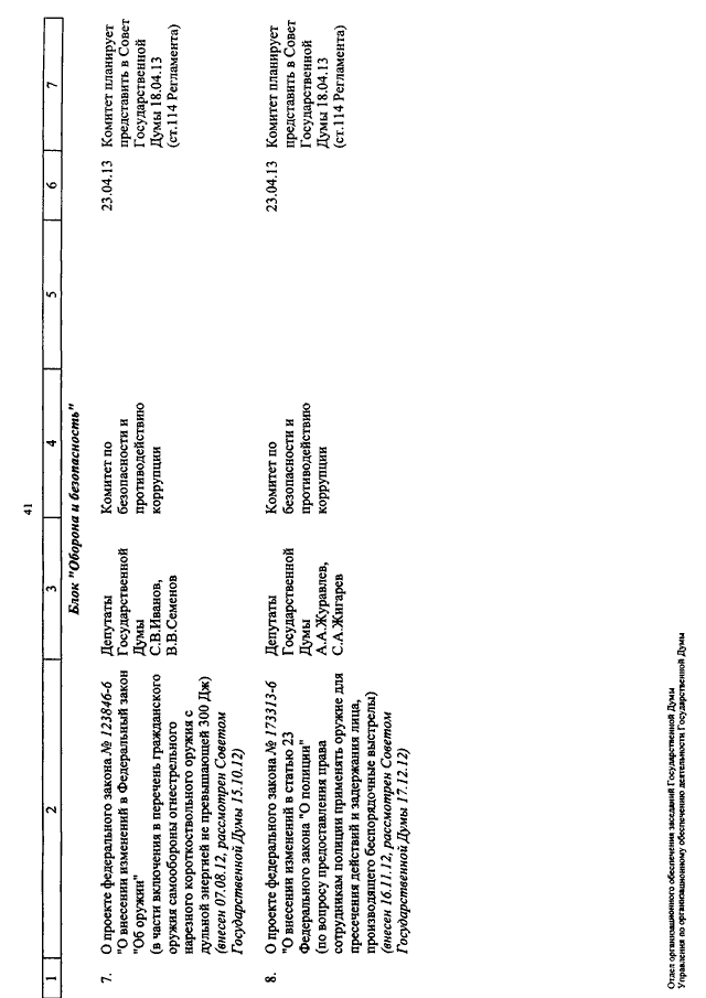 "О КАЛЕНДАРЕ РАССМОТРЕНИЯ ВОПРОСОВ ГОСУДАРСТВЕННОЙ ДУМОЙ С 9 ПО 26 АПРЕЛЯ 2013 ГОДА"
