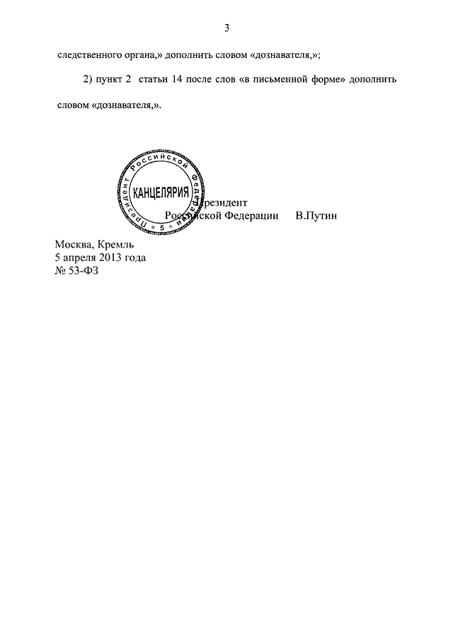 ФЕДЕРАЛЬНЫЙ ЗАКОН от 05.04.2013 N 53-ФЗ