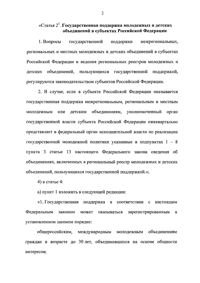 "О ВНЕСЕНИИ ИЗМЕНЕНИЙ В ФЕДЕРАЛЬНЫЙ ЗАКОН "О ГОСУДАРСТВЕННОЙ ПОДДЕРЖКЕ МОЛОДЕЖНЫХ И ДЕТСКИХ ОБЩЕСТВЕННЫХ ОБЪЕДИНЕНИЙ"