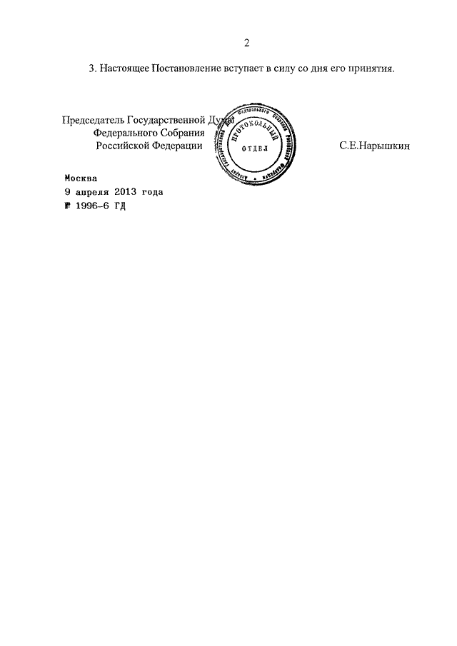ПОСТАНОВЛЕНИЕ ГД ФС РФ от 09.04.2013 N 1996-6 ГД