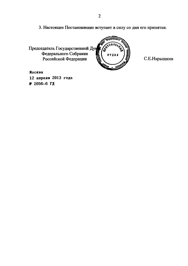 ПОСТАНОВЛЕНИЕ ГД ФС РФ от 12.04.2013 N 2056-6 ГД