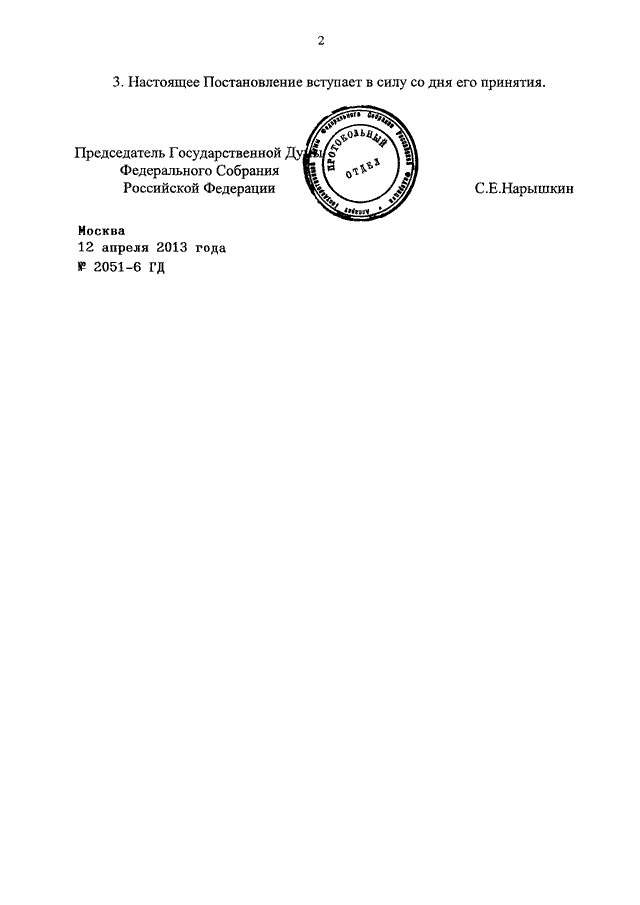 ПОСТАНОВЛЕНИЕ ГД ФС РФ от 12.04.2013 N 2051-6 ГД