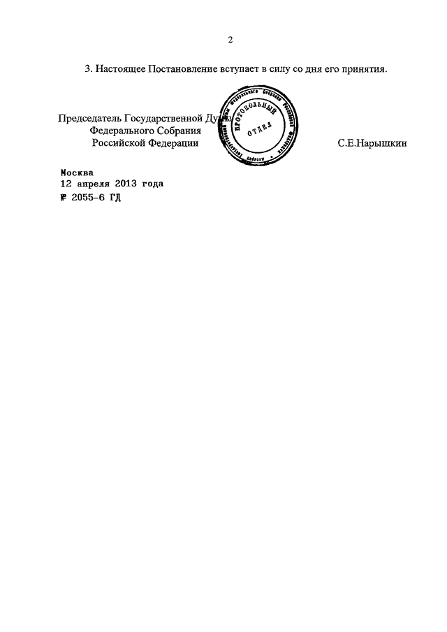 ПОСТАНОВЛЕНИЕ ГД ФС РФ от 12.04.2013 N 2055-6 ГД