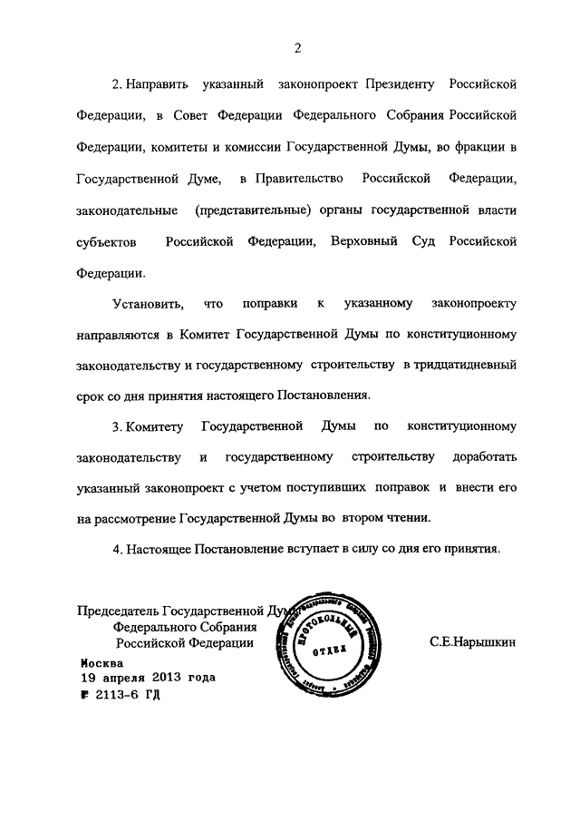 ПОСТАНОВЛЕНИЕ ГД ФС РФ от 19.04.2013 N 2113-6 ГД