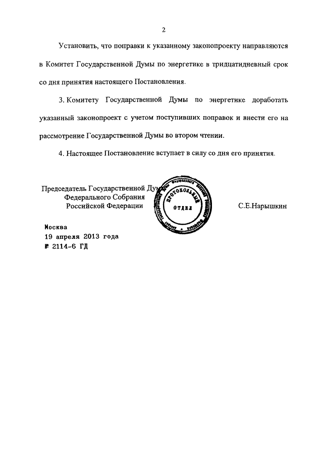 ПОСТАНОВЛЕНИЕ ГД ФС РФ от 19.04.2013 N 2114-6 ГД