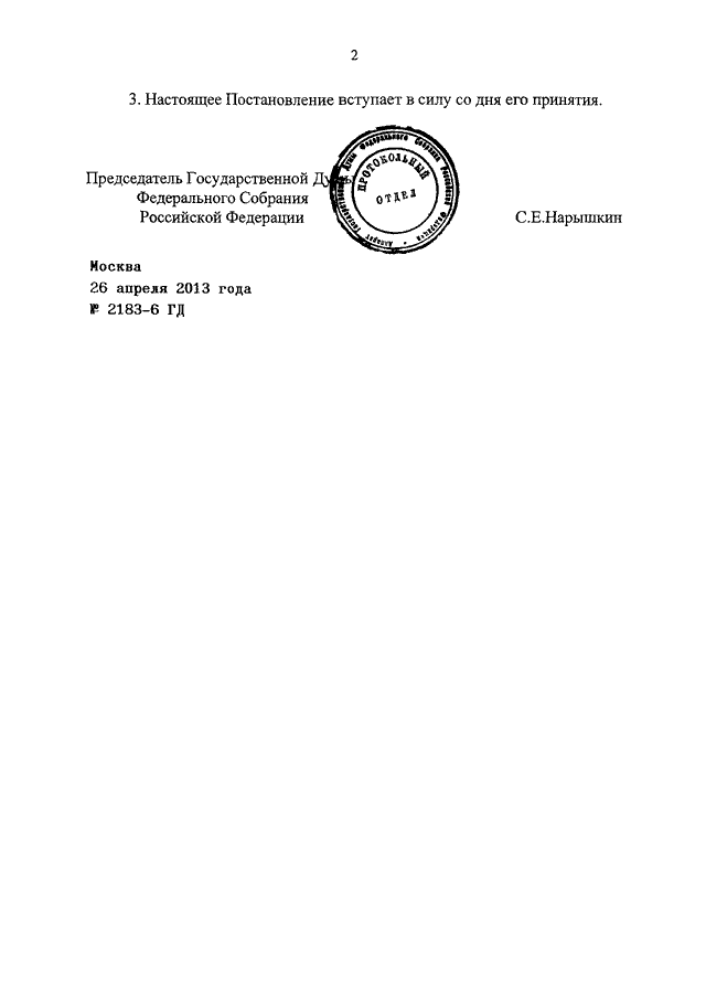 ПОСТАНОВЛЕНИЕ ГД ФС РФ от 26.04.2013 N 2183-6 ГД
