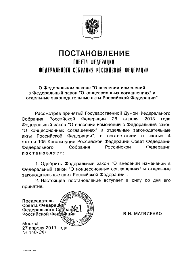 ПОСТАНОВЛЕНИЕ СФ ФС РФ от 27.04.2013 N 140-СФ