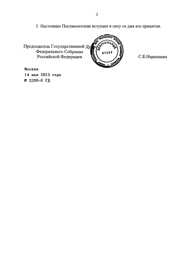 ПОСТАНОВЛЕНИЕ ГД ФС РФ от 14.05.2013 N 2209-6 ГД