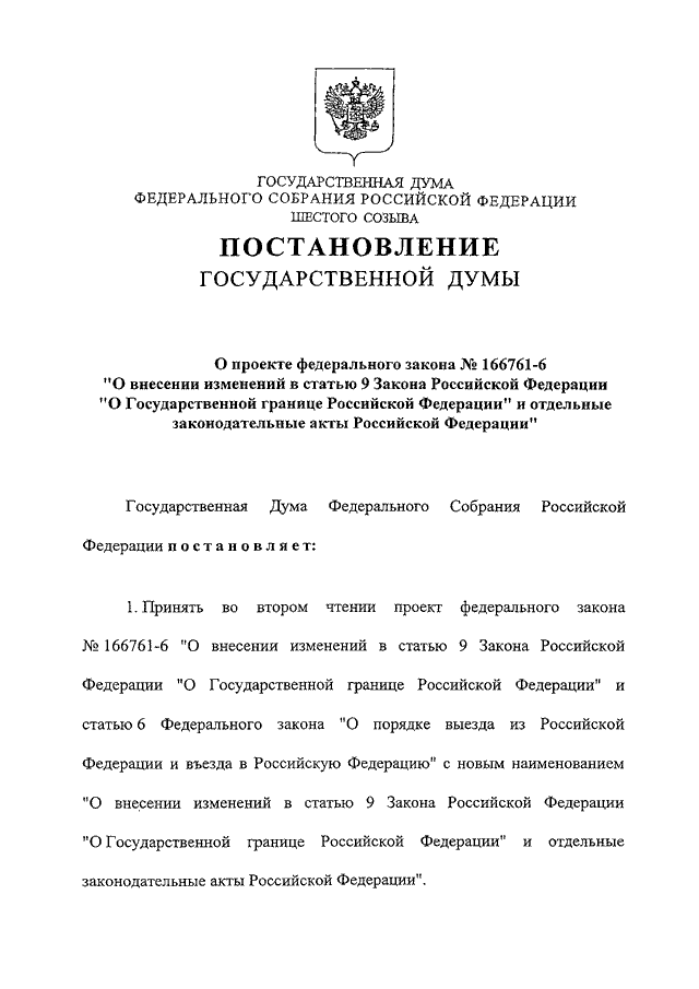 "О ПРОЕКТЕ ФЕДЕРАЛЬНОГО ЗАКОНА N 166761-6 "О ВНЕСЕНИИ ИЗМЕНЕНИЙ В