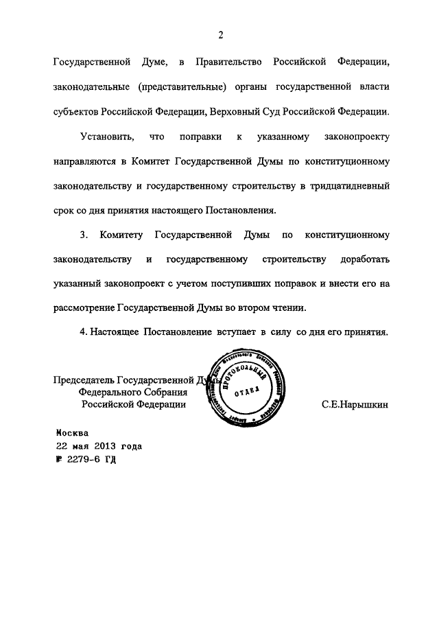 ПОСТАНОВЛЕНИЕ ГД ФС РФ от 22.05.2013 N 2279-6 ГД