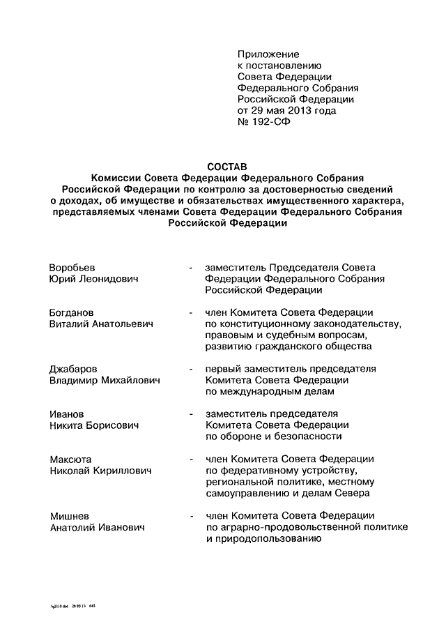 ПОСТАНОВЛЕНИЕ СФ ФС РФ от 29.05.2013 N 192-СФ