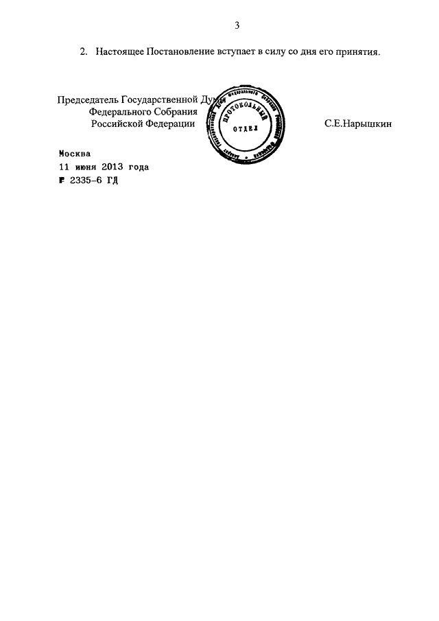 ПОСТАНОВЛЕНИЕ ГД ФС РФ от 11.06.2013 N 2335-6 ГД