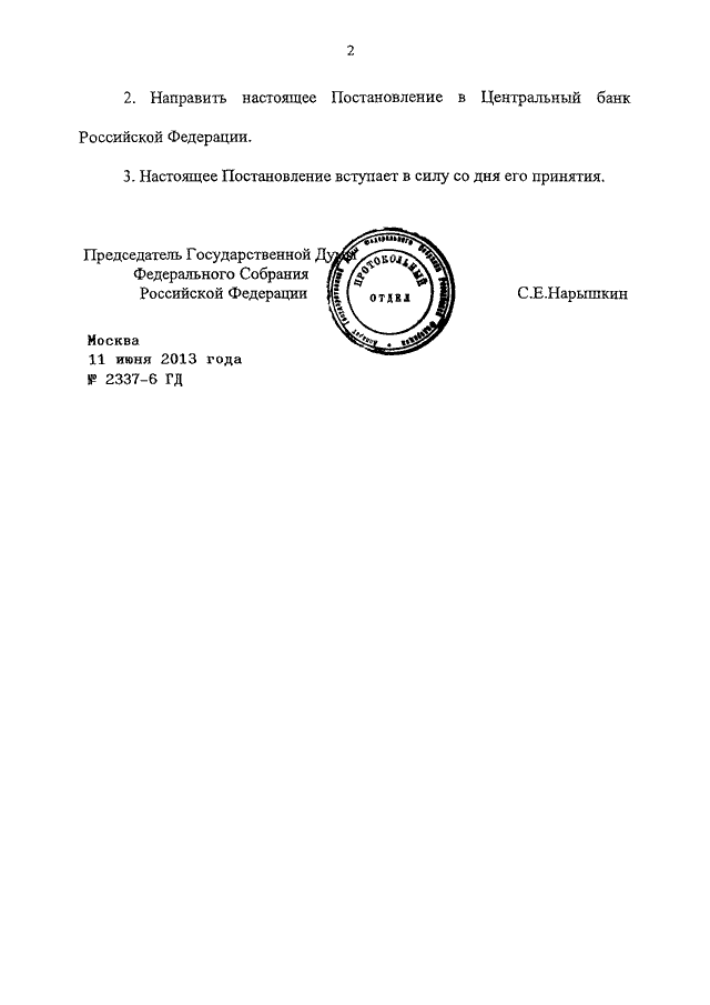 ПОСТАНОВЛЕНИЕ ГД ФС РФ от 11.06.2013 N 2337-6 ГД