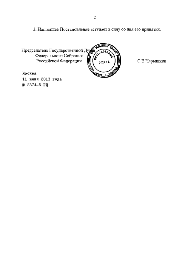 ПОСТАНОВЛЕНИЕ ГД ФС РФ от 11.06.2013 N 2374-6 ГД