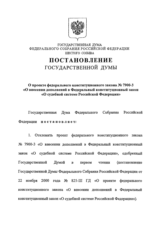 "О ПРОЕКТЕ ФЕДЕРАЛЬНОГО КОНСТИТУЦИОННОГО ЗАКОНА N 7900-3 "О ВНЕСЕНИИ ДОПОЛНЕНИЙ В ФЕДЕРАЛЬНЫЙ КОНСТИТУЦИОННЫЙ ЗАКОН "О СУДЕБНОЙ СИСТЕМЕ РОССИЙСКОЙ ФЕДЕРАЦИИ"