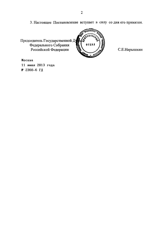 ПОСТАНОВЛЕНИЕ ГД ФС РФ от 11.06.2013 N 2368-6 ГД