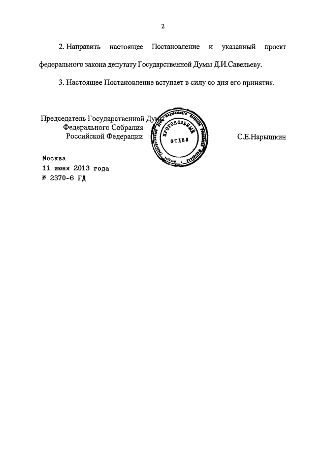 ПОСТАНОВЛЕНИЕ ГД ФС РФ от 11.06.2013 N 2370-6 ГД