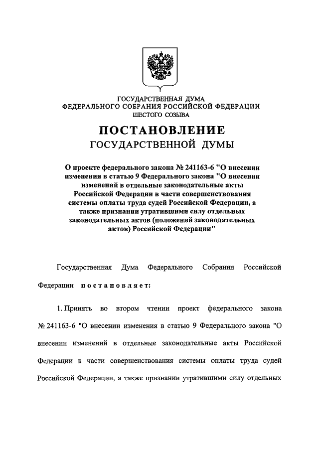 СОВЕРШЕНСТВОВАНИЯ СИСТЕМЫ ОПЛАТЫ ТРУДА СУДЕЙ РОССИЙСКОЙ ФЕДЕРАЦИИ,