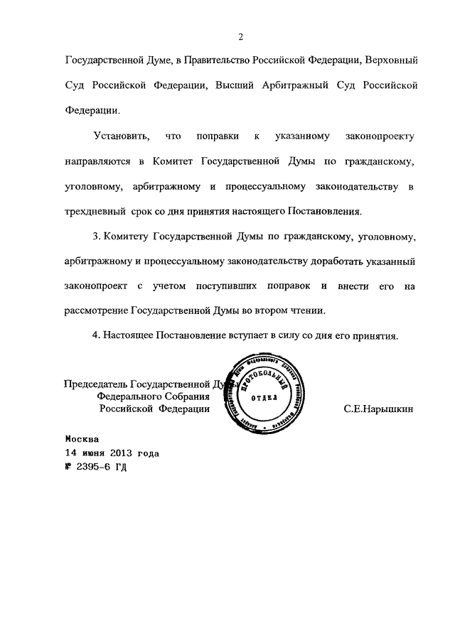 ПОСТАНОВЛЕНИЕ ГД ФС РФ от 14.06.2013 N 2395-6 ГД