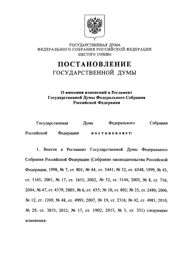 "О ВНЕСЕНИИ ИЗМЕНЕНИЙ В РЕГЛАМЕНТ ГОСУДАРСТВЕННОЙ ДУМЫ ФЕДЕРАЛЬНОГО СОБРАНИЯ РОССИЙСКОЙ ФЕДЕРАЦИИ"