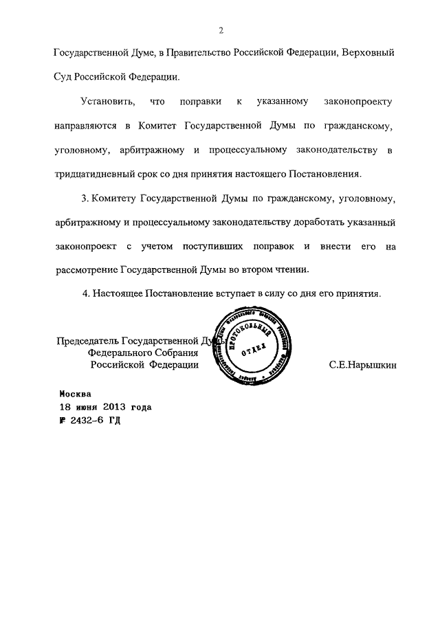 ПОСТАНОВЛЕНИЕ ГД ФС РФ от 18.06.2013 N 2432-6 ГД