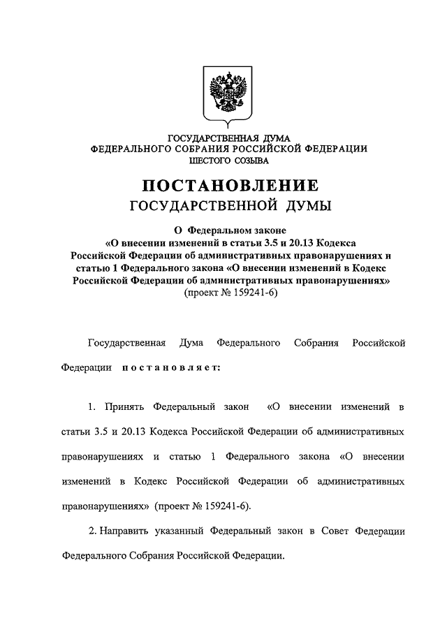 "О ФЕДЕРАЛЬНОМ ЗАКОНЕ "О ВНЕСЕНИИ ИЗМЕНЕНИЙ В СТАТЬИ 3.5 И 20.13