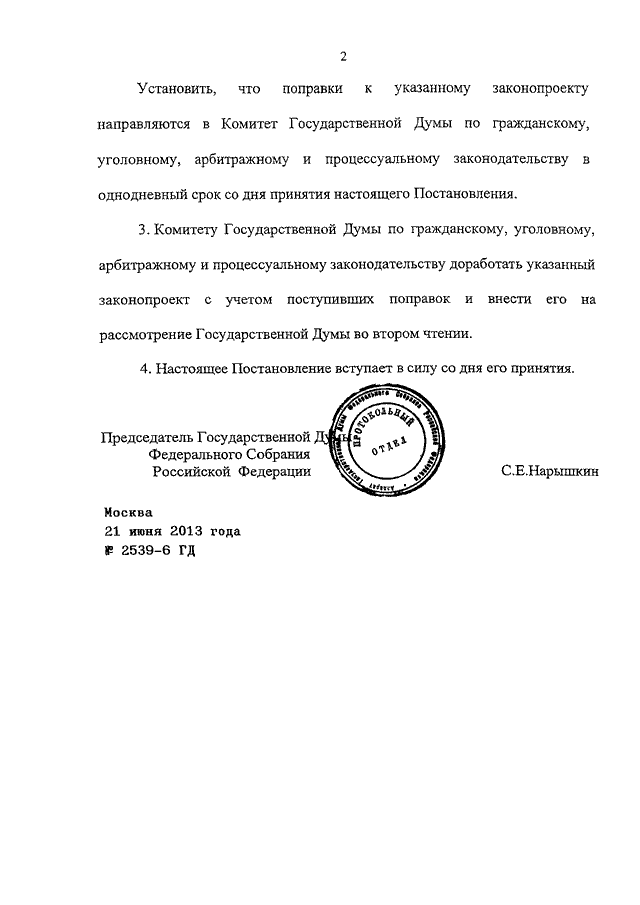 ПОСТАНОВЛЕНИЕ ГД ФС РФ от 21.06.2013 N 2539-6 ГД