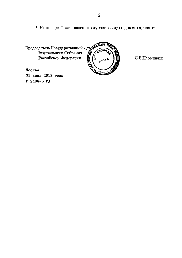 ПОСТАНОВЛЕНИЕ ГД ФС РФ от 21.06.2013 N 2488-6 ГД