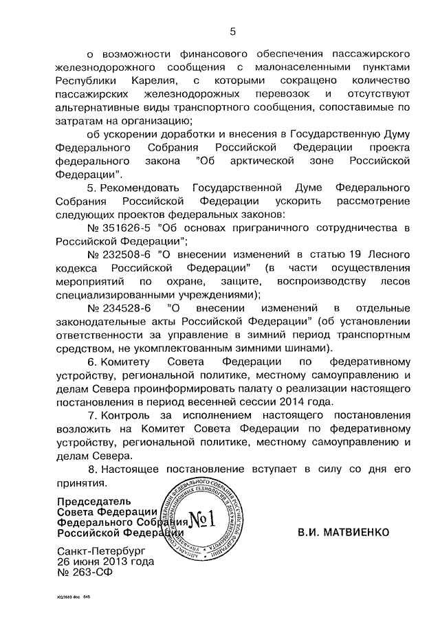 ПОСТАНОВЛЕНИЕ СФ ФС РФ от 26.06.2013 N 263-СФ