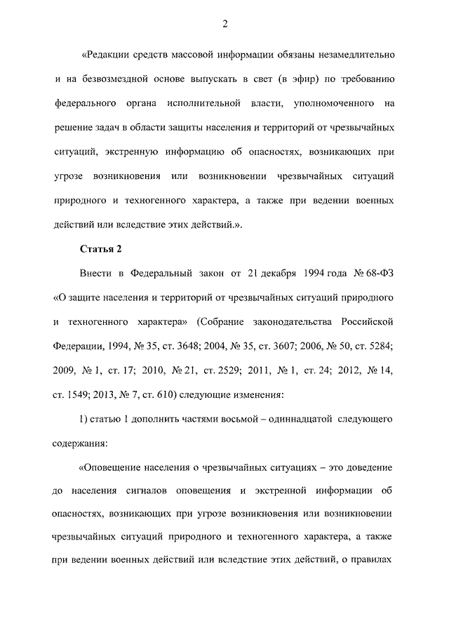 "О ВНЕСЕНИИ ИЗМЕНЕНИЙ В ОТДЕЛЬНЫЕ ЗАКОНОДАТЕЛЬНЫЕ АКТЫ РОССИЙСКОЙ ФЕДЕРАЦИИ ПО ВОПРОСУ ОПОВЕЩЕНИЯ И ИНФОРМИРОВАНИЯ НАСЕЛЕНИЯ"