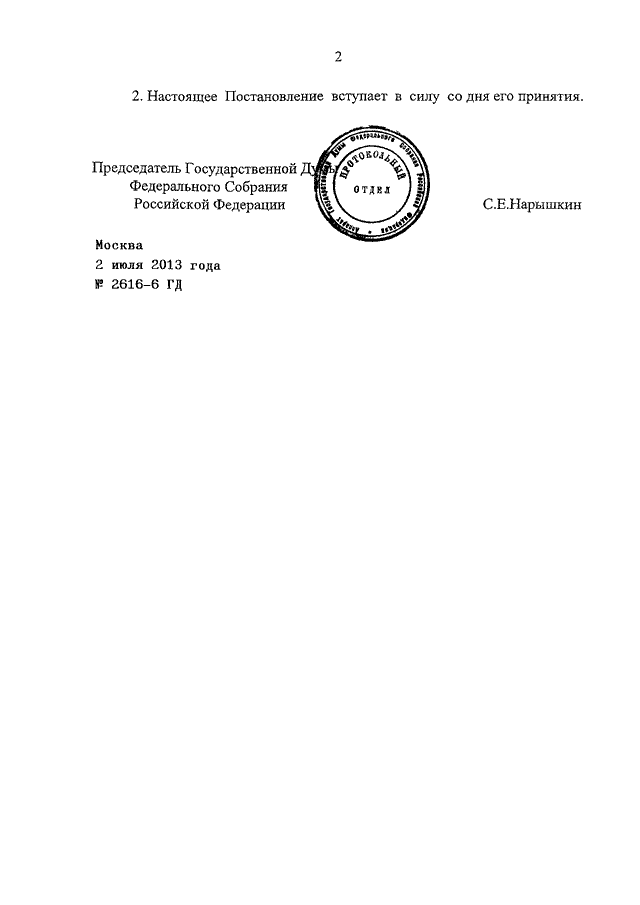 ПОСТАНОВЛЕНИЕ ГД ФС РФ от 02.07.2013 N 2616-6 ГД