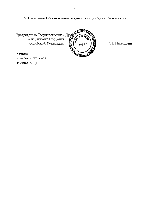 ПОСТАНОВЛЕНИЕ ГД ФС РФ от 02.07.2013 N 2552-6 ГД