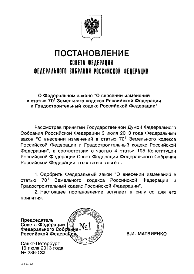 ПОСТАНОВЛЕНИЕ СФ ФС РФ от 10.07.2013 N 286-СФ