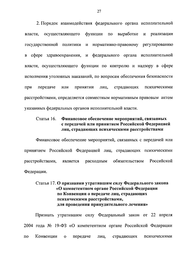 "О ПЕРЕДАЧЕ И ПРИНЯТИИ РОССИЙСКОЙ ФЕДЕРАЦИЕЙ ЛИЦ, СТРАДАЮЩИХ ПСИХИЧЕСКИМИ РАССТРОЙСТВАМИ, В ОТНОШЕНИИ КОТОРЫХ ИМЕЕТСЯ РЕШЕНИЕ СУДА О ПРИМЕНЕНИИ ПРИНУДИТЕЛЬНЫХ МЕР МЕДИЦИНСКОГО ХАРАКТЕРА"
