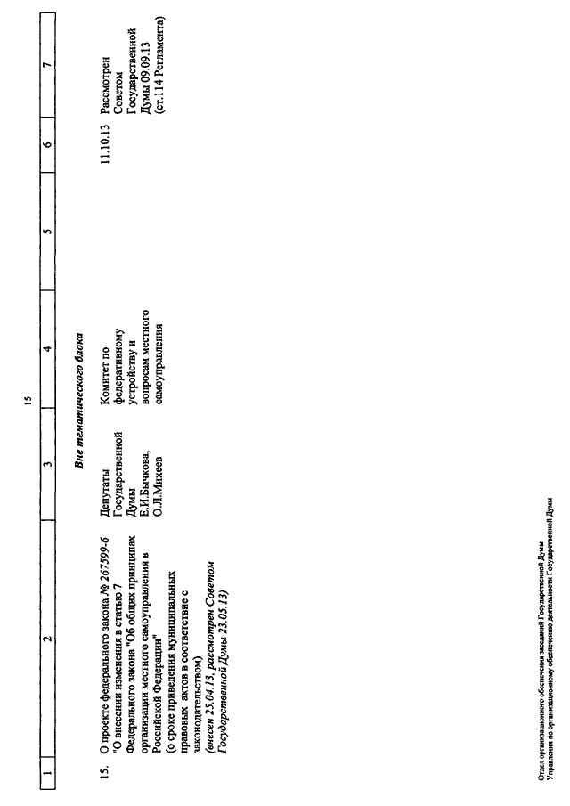 "О КАЛЕНДАРЕ РАССМОТРЕНИЯ ВОПРОСОВ ГОСУДАРСТВЕННОЙ ДУМОЙ С 8 ПО 25 ОКТЯБРЯ 2013 ГОДА"