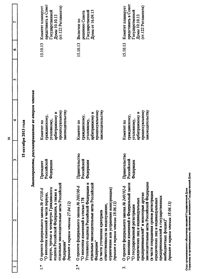 "О КАЛЕНДАРЕ РАССМОТРЕНИЯ ВОПРОСОВ ГОСУДАРСТВЕННОЙ ДУМОЙ С 8 ПО 25 ОКТЯБРЯ 2013 ГОДА"