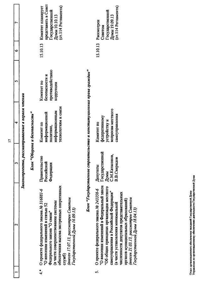 "О КАЛЕНДАРЕ РАССМОТРЕНИЯ ВОПРОСОВ ГОСУДАРСТВЕННОЙ ДУМОЙ С 8 ПО 25 ОКТЯБРЯ 2013 ГОДА"
