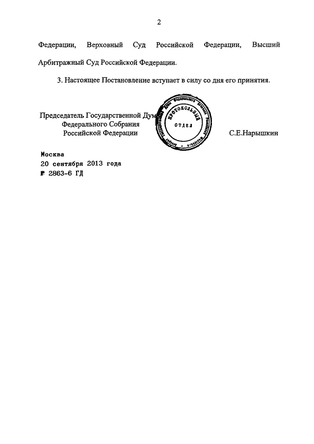 ПОСТАНОВЛЕНИЕ ГД ФС РФ от 20.09.2013 N 2863-6 ГД