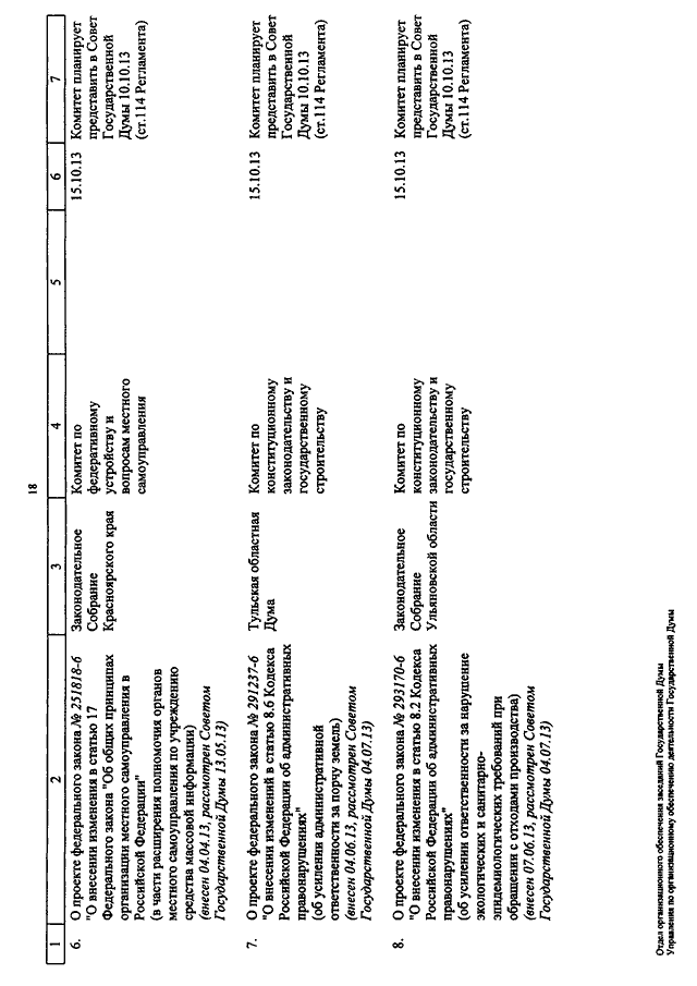 "О КАЛЕНДАРЕ РАССМОТРЕНИЯ ВОПРОСОВ ГОСУДАРСТВЕННОЙ ДУМОЙ С 8 ПО 25 ОКТЯБРЯ 2013 ГОДА"