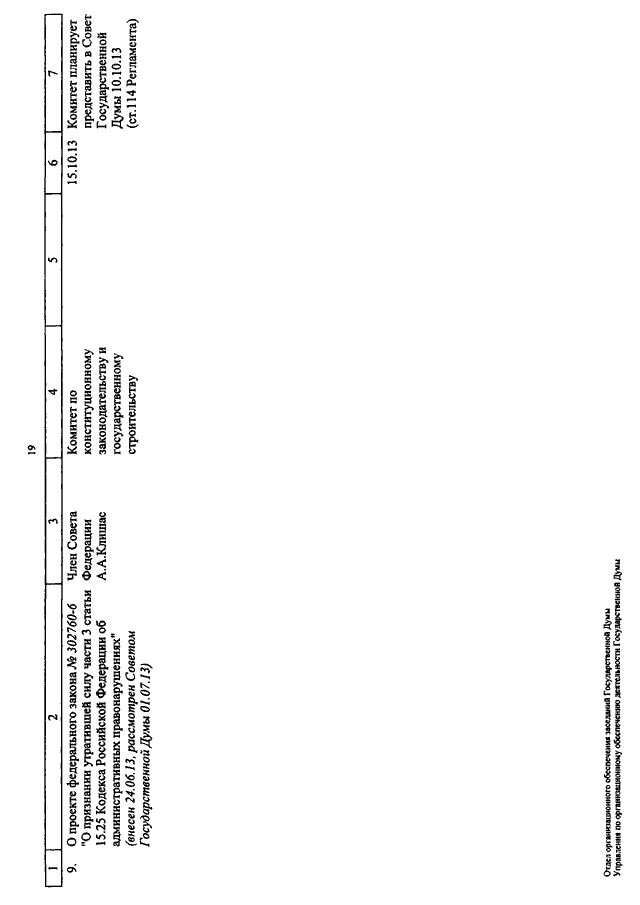 "О КАЛЕНДАРЕ РАССМОТРЕНИЯ ВОПРОСОВ ГОСУДАРСТВЕННОЙ ДУМОЙ С 8 ПО 25 ОКТЯБРЯ 2013 ГОДА"