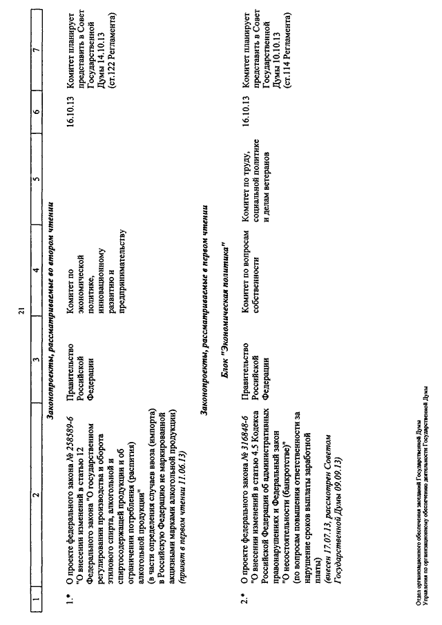"О КАЛЕНДАРЕ РАССМОТРЕНИЯ ВОПРОСОВ ГОСУДАРСТВЕННОЙ ДУМОЙ С 8 ПО 25 ОКТЯБРЯ 2013 ГОДА"