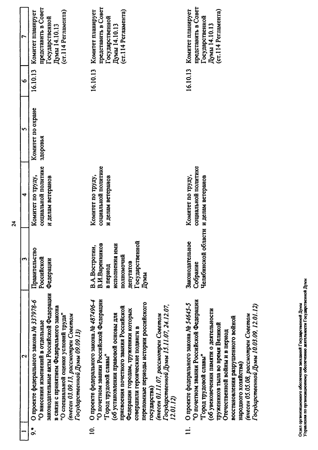 "О КАЛЕНДАРЕ РАССМОТРЕНИЯ ВОПРОСОВ ГОСУДАРСТВЕННОЙ ДУМОЙ С 8 ПО 25 ОКТЯБРЯ 2013 ГОДА"