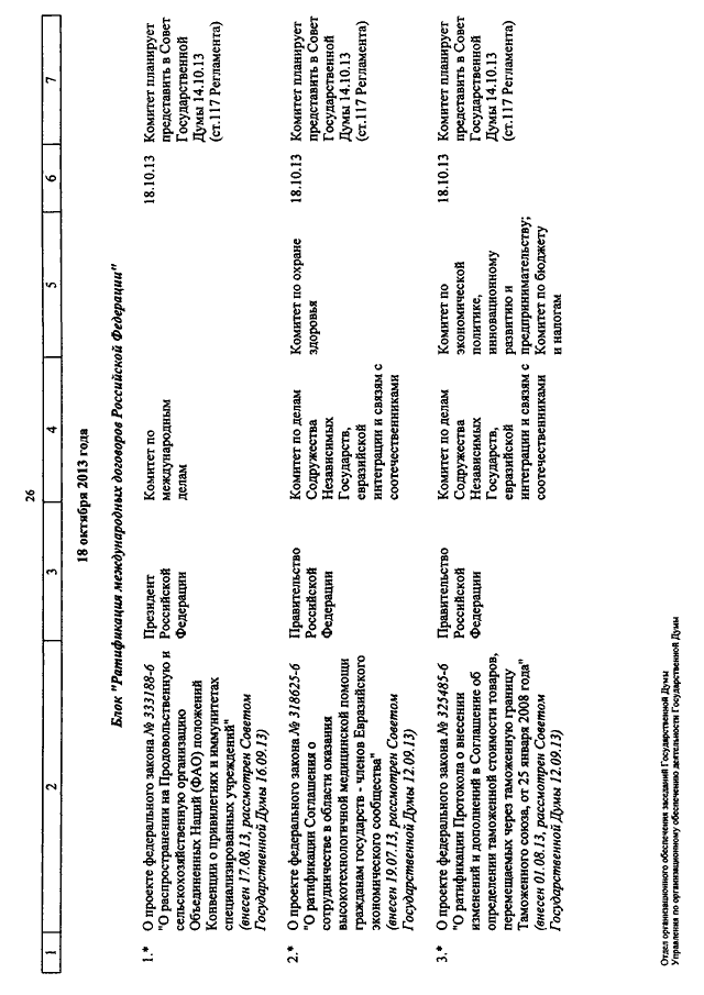 "О КАЛЕНДАРЕ РАССМОТРЕНИЯ ВОПРОСОВ ГОСУДАРСТВЕННОЙ ДУМОЙ С 8 ПО 25 ОКТЯБРЯ 2013 ГОДА"